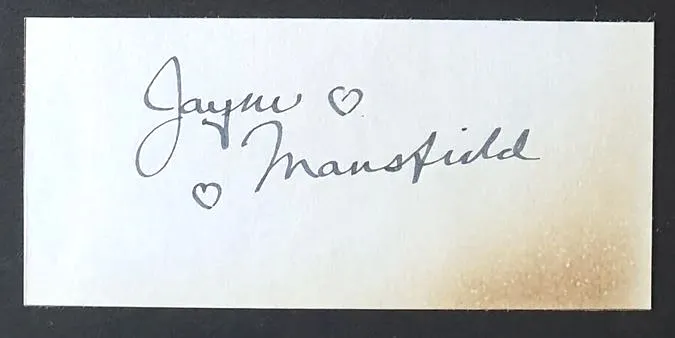 Based on our detailed analysis and professional assessment, it is our considered opinion that the signature on this vintage card is genuine and was personally signed by Jayne Mansfield.